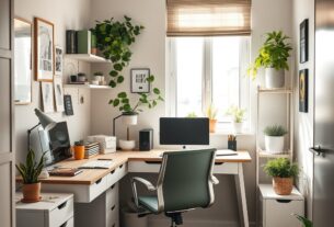 Rozpocznij od wyboru miejsca w salonie, które będzie zarówno dostępne, jak i możliwe do oddzielenia od strefy wypoczynkowej. Idealnie, jeśli biurko znajdzie się przy oknie, co zapewni naturalne światło.